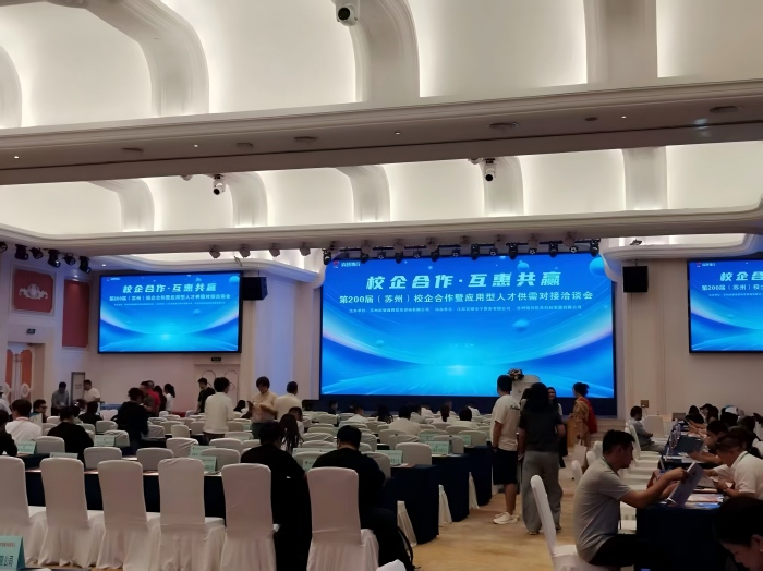 2025年9月20日,为进一步拓展毕业生实习就业渠道、深化校企合作内涵,信息工程学院产教融合中心主任项芳莉和辅导员周佳佳老师赴苏州参加第200届校企合作暨应用型人才供需对接洽谈会。此次会议汇聚长三角地区120余家高新技术企业、科研院所及教育机构,围绕“产教融合赋能新质生产力”主题展开深度对话,学院与多家企业达成合作意向,为区域经济发展注入人才动能。