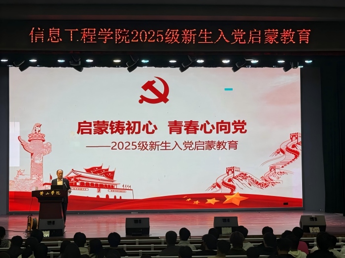 本次入党启蒙教育作为信息工程学院新生入学教育的核心环节,亦是学院党委深入推进党员发展工作、加强基层党组织建设的有力抓手。通过这一教育活动,引导青年学子坚定理想信念、明确成长方向,红色信仰的种子在2025级新生心中悄然扎根,更引导广大学子把个人理想追求融入国家发展洪流,以青春担当续写时代华章。