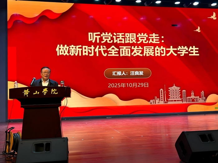 10月29日下午,校关工委常务副主任、原校党委书记汪良发以《听党话跟党走:做新时代全面发展的大学生》为题,采用一位老党员与青年大学生谈心的创新方式为信息工程学院2025级全体新生带来了一场思想深刻、饱含深情的专题讲座,用54年党龄沉淀的宝贵经验激发青年学子树立远大理想,坚定政治方向,听党话跟党走,努力成才不负时代,服务社会报效祖国的雄心壮志。