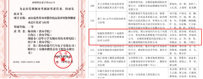 值得关注的是,团队科研成果在国家级奖项申报中脱颖而出:中国发明协会2025年度发明创业奖评选中,黄山学院作为第一完成单位的成果——“面向宽禁带功率器件的高效率智能型栅驱动芯片技术与应用”荣获发明创业创新奖二等奖,团队陈珍海教授为成果第一完成人;宁仁霞教授主持的“低能耗高精度片上电磁传感器及信号处理电路集成技术与应用”项目,荣获2025年度中国商业联合会科学技术奖二等奖。两项国家级奖项的斩获,标志着团队科研成果的创新性与应用价值获得行业高度认可。