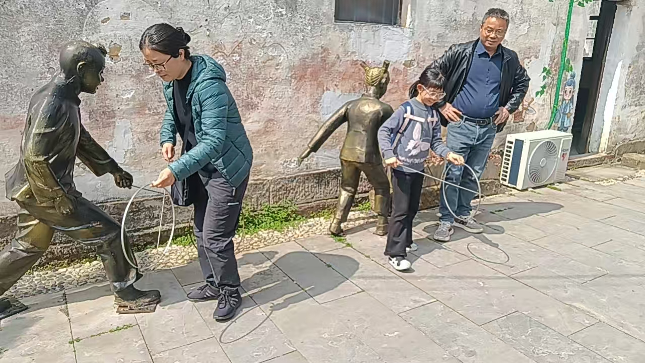 最后大家漫步在童趣街,一幅幅生动的墙绘与老物件展示区相得益彰,大家三五成群,或驻足拍照,或滚铁环重拾童年记忆,欢声笑语回荡在春日的村巷中。