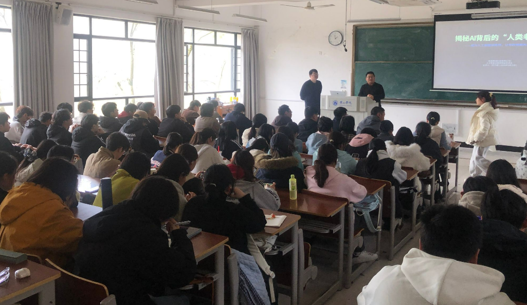 3月25日的人工智能训练师-数据标注员宣讲报告由学院沈来信教授主持,人工智能教研室全体教师参与,安徽再渡科技有限公司武子捷工程师担任主讲,围绕人工智能训练师职业发展、数据标注行业前景、岗位技能要求等核心内容展开讲解,为同学们清晰解读了行业发展趋势与就业方向,让大家对人工智能领域的相关职业有了更全面、深入认识。