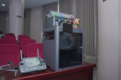 与此同时,3D打印机现场运作,将创意转化为实体模型,直观呈现了增材制造的神奇。进一步拉近了学子与前沿科技的距离,全方位激发了大家对信息技术、人工智能等领域的探索兴趣。无人机在报告厅内进行静态展示,工作人员详细介绍其功能与应用场景。同学们纷纷围拢无人机,驻足观察、交流,眼神中满是好奇、跃跃欲试。不少同学主动向工作人员提问,详细了解无人机的操作原理与应用前景,对这项智能技术展现出浓厚的探索热情。
