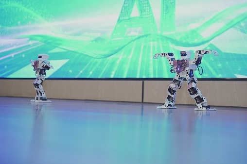 开幕式现场亮点纷呈,各类科技展示与互动环节成为全场焦点。伴随着轻快的旋律,各类智能机器人依次登场,灵活完成一系列精准动作,将科技的灵动与艺术的美感完美融合,展现了学院在智能机器人领域的实践成果,引得在场师生阵阵喝彩与拍照留念。在问答互动环节,机器人凭借精准的应答能力,与现场学子积极互动,解答各类科技相关问题,现场氛围热烈活跃。